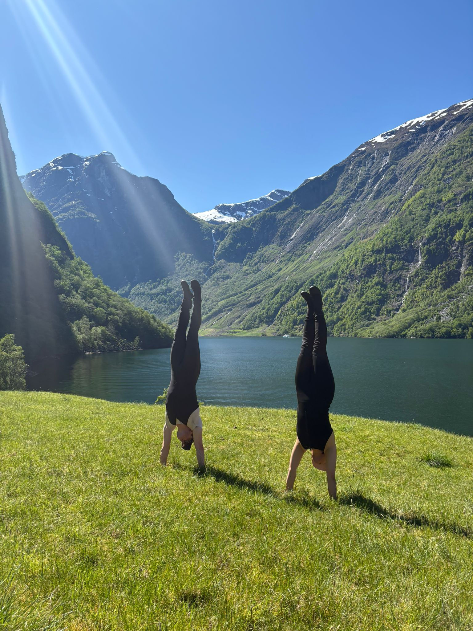 AcroYoga is practiced with a partner or in small groups. You will pair up with someone (or more people) to perform various poses and movements together. Classes typically include both static poses and dynamic flows, encouraging teamwork and communication.